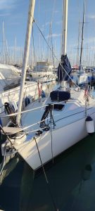 attrezzatura coperta: 4 winch st, stopper in tuga nuovi, Zattera, tender, pompa di sentina elettrica e manuale, 180 lt acqua, triangolo di prua, bagno con doccia interna, dinette trasformabile, cucina nuova ad angolo con 2 fuochi, frigo elettrico nuovo, a sx tavolo da carteggio con vhf fisso. Cuccetta di poppa. sostituite le sartie, rifacimento completo impianto elettrico, idrico e sostituiti strumenti . nel 20215 sostituiti winch e stop in coperta.