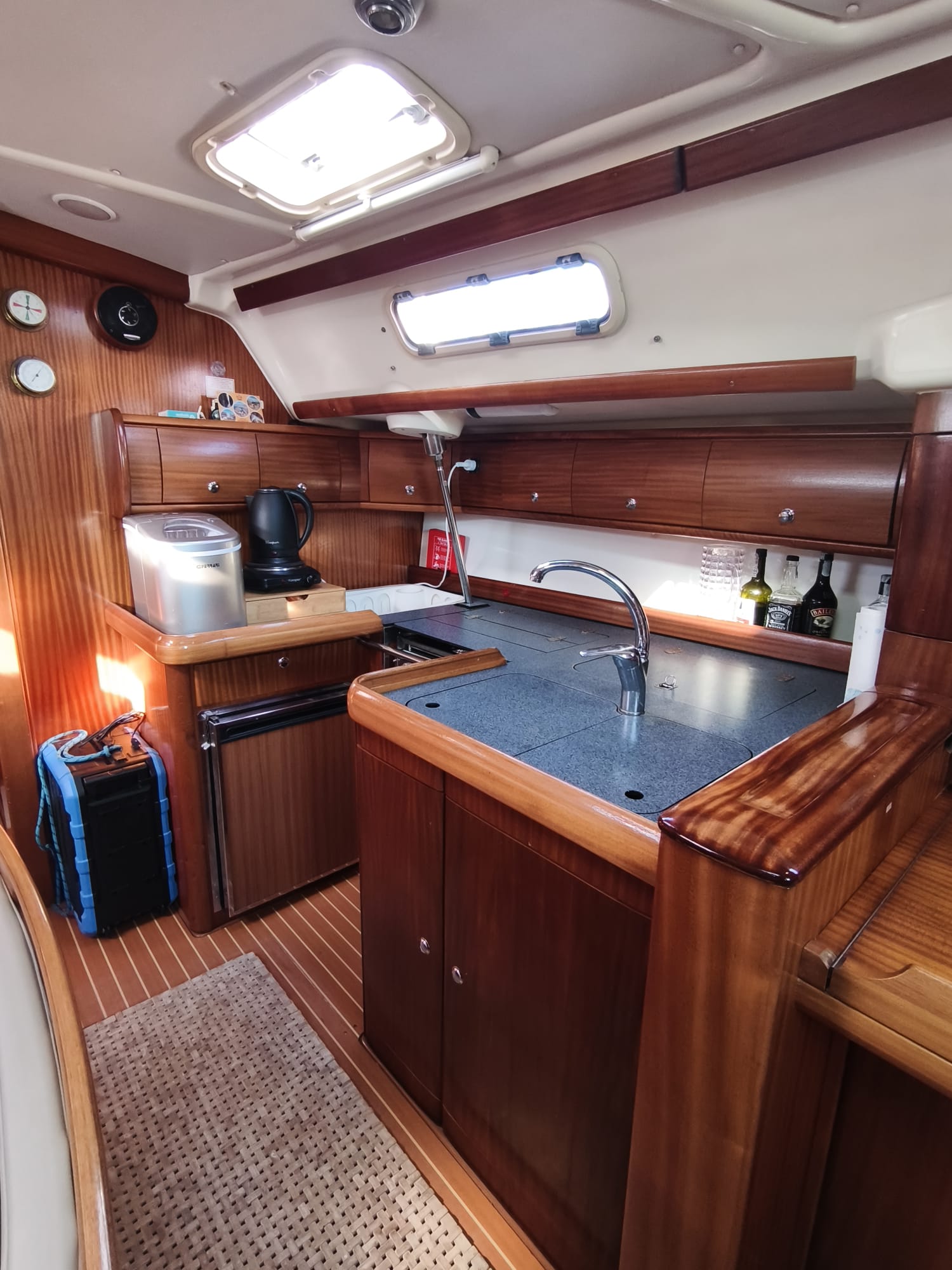 La randa è avvolgibile nell’albero e il genoa (vele recenti). Ultimi lavori svolti: sostituito il teak con il Flexiteek 23′, sostitutita cuffia S-drive 23′, sostituita la boccola del timone e tutte le prese a mare nel 22