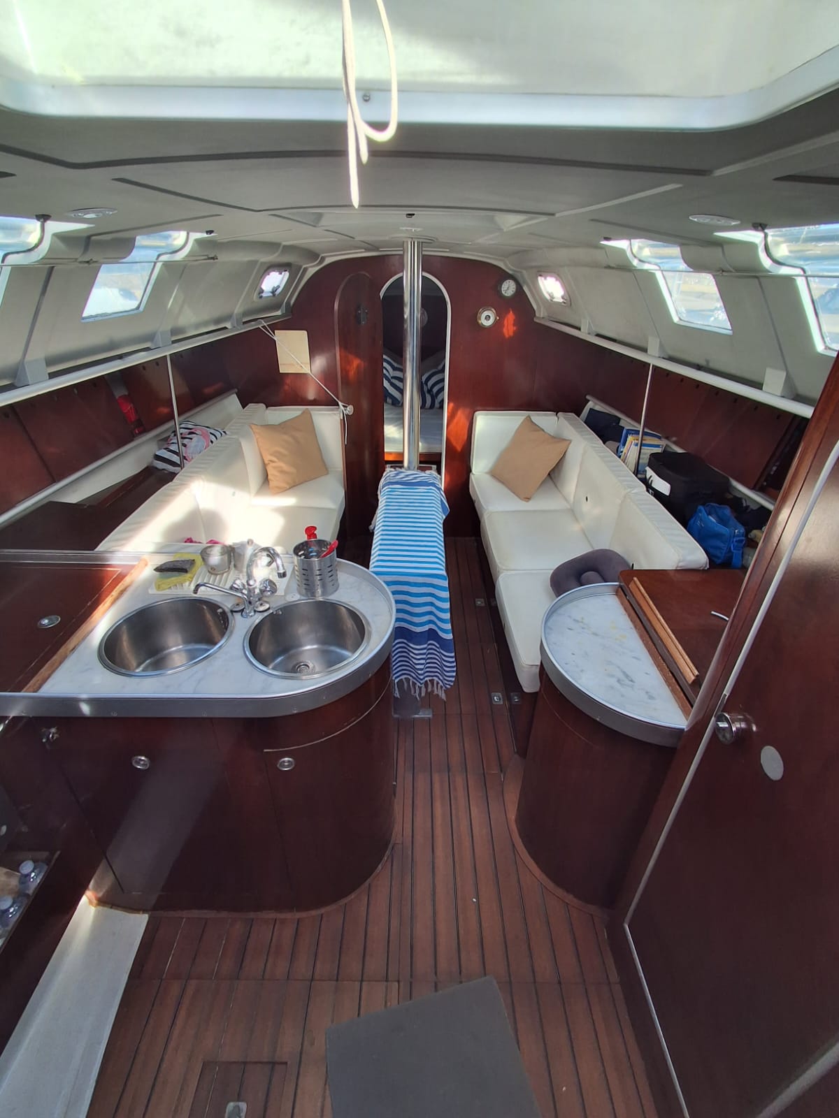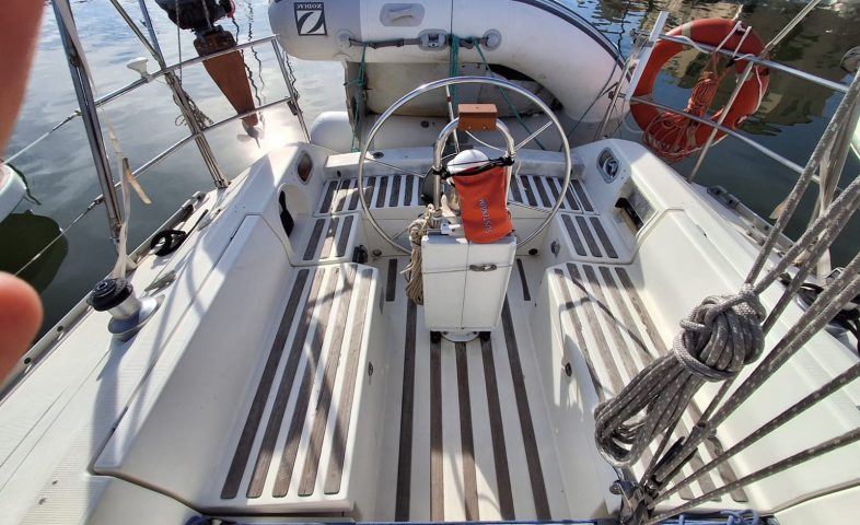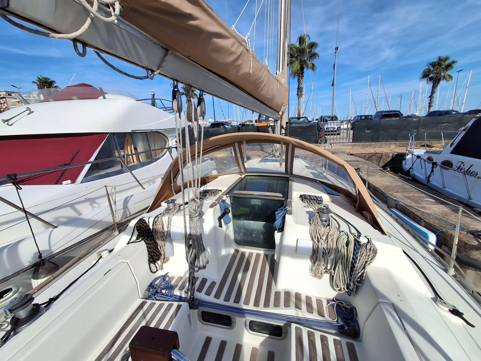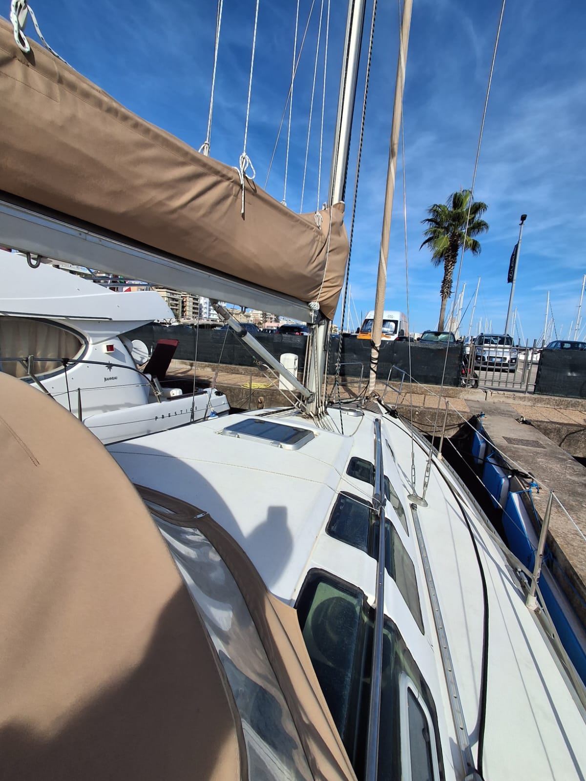 sloop con randa e genoa del 2008, tendalini copri randa e cappottina recenti, sartie sostituite nel 2023. motore sostituito nel 2000, gia revisionato nel 2010 attualmente 500h/m, autogonfiabile nuova del 2024, 3 batterie carica batterie e inverter