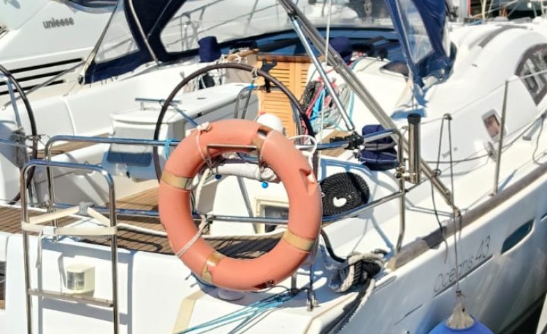 • sloop con randa avvolgibile, genoa, ( uv sostituito) attrezzatura coperta: 4 winch st,  gruetta per sollevamento motore a poppa.