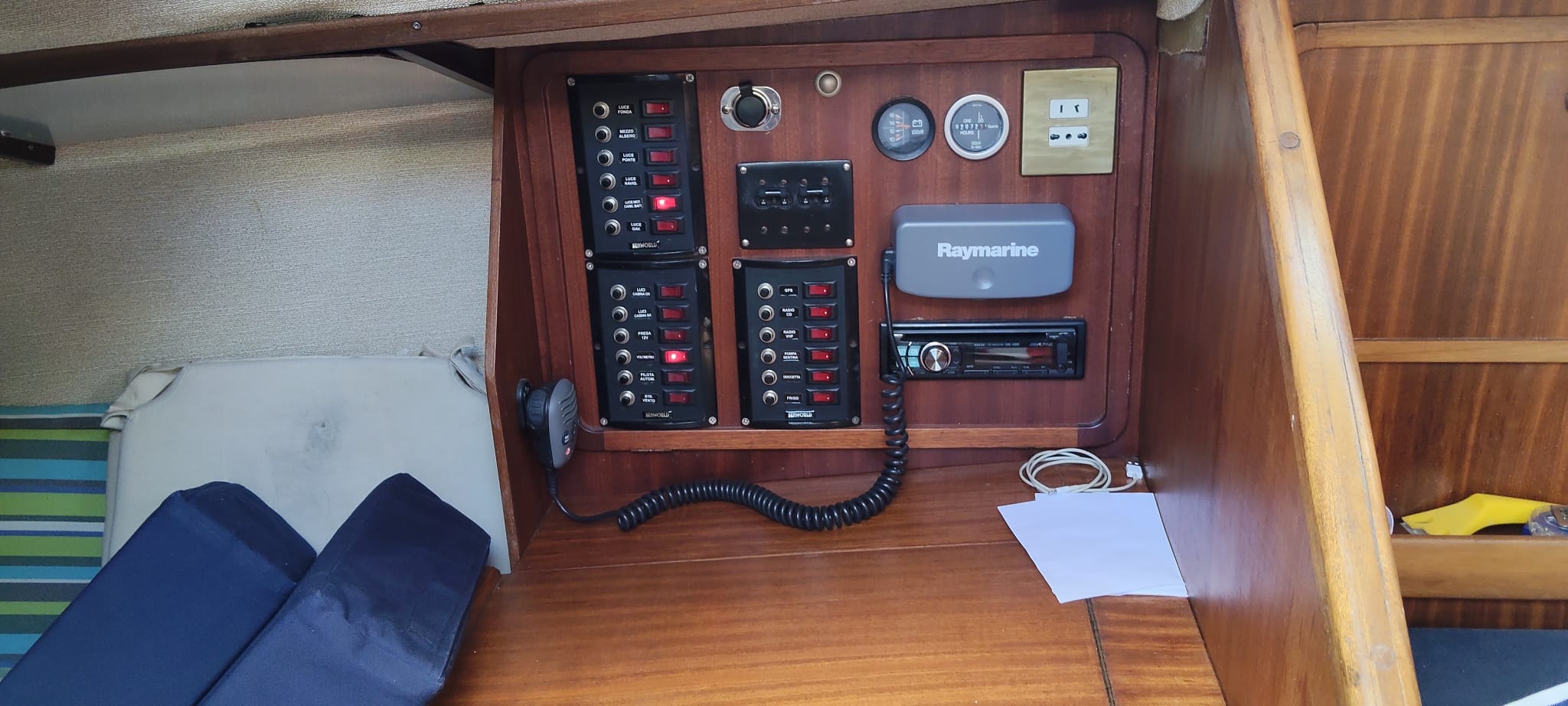 • strumenti :geonav 7wide gps, vhf fisso Raymarine, st. vento eco log Nasa Cruiser.